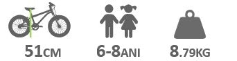 O bicicletă MTB super-ușoară de 8,6 kg, cu 8 viteze, creată pentru micii aventurieri de 6-8 ani care își doresc mai multă putere la urcări și mai multă adrenalină la coborâri. 🚵