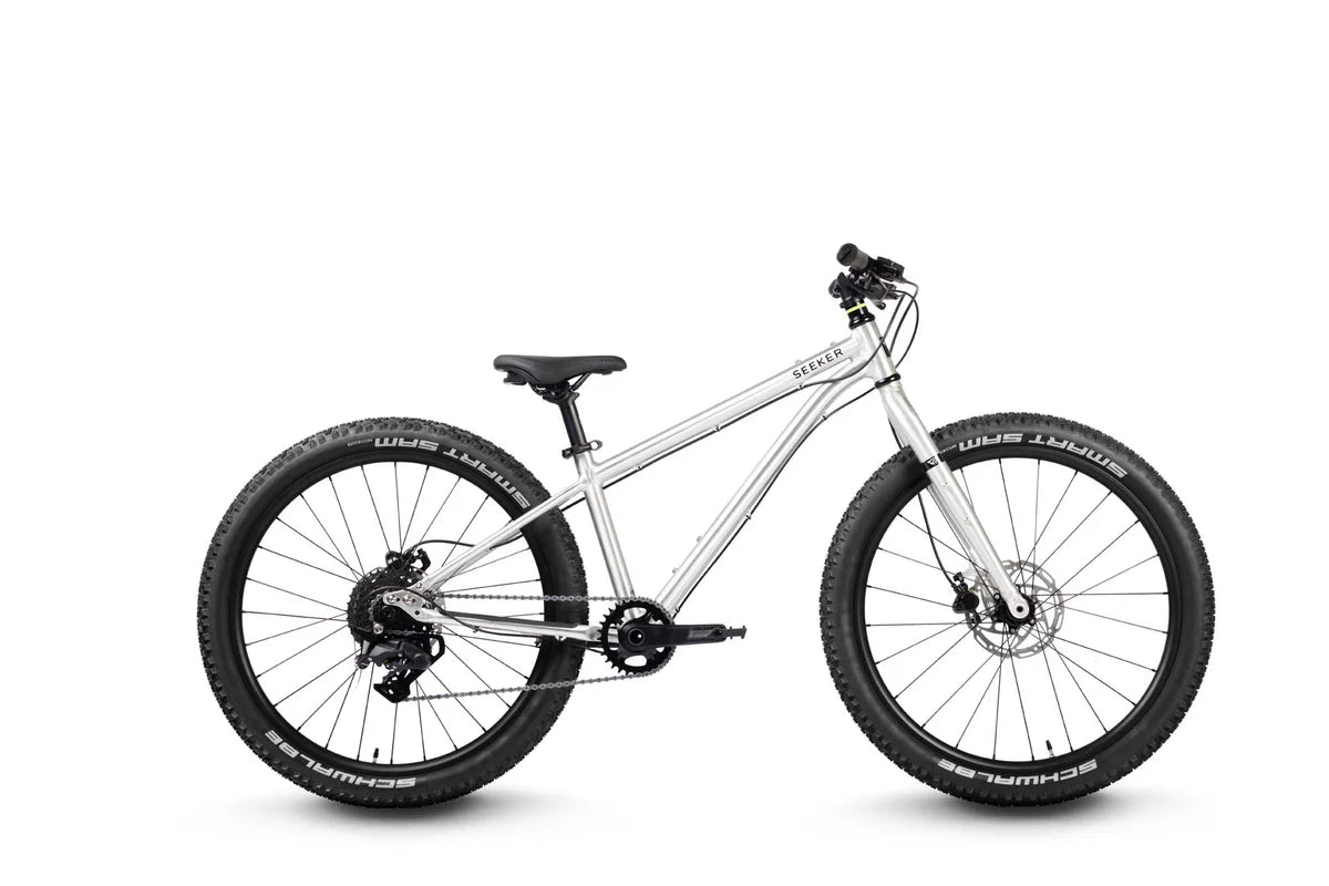 Transmisia rafinată cu lanț, noul angrenaj de 110 mm și grupul Shimano CUES 9 viteze îmbunătățesc eficiența la pedalare, făcând din Seeker X20 alegerea perfectă pentru micii rideri ambițioși de trail.